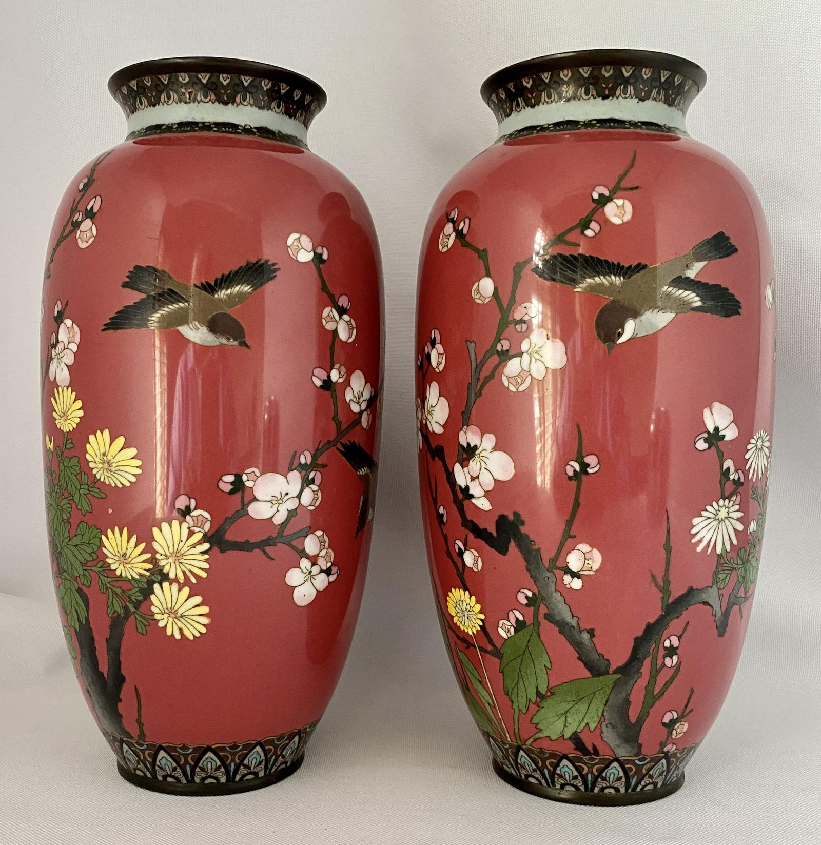 Superb Pair Japanese Cloisonne Vases. C1900.