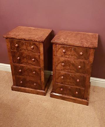 Superb Pair of Antique Burr Walnut Bedside Chests