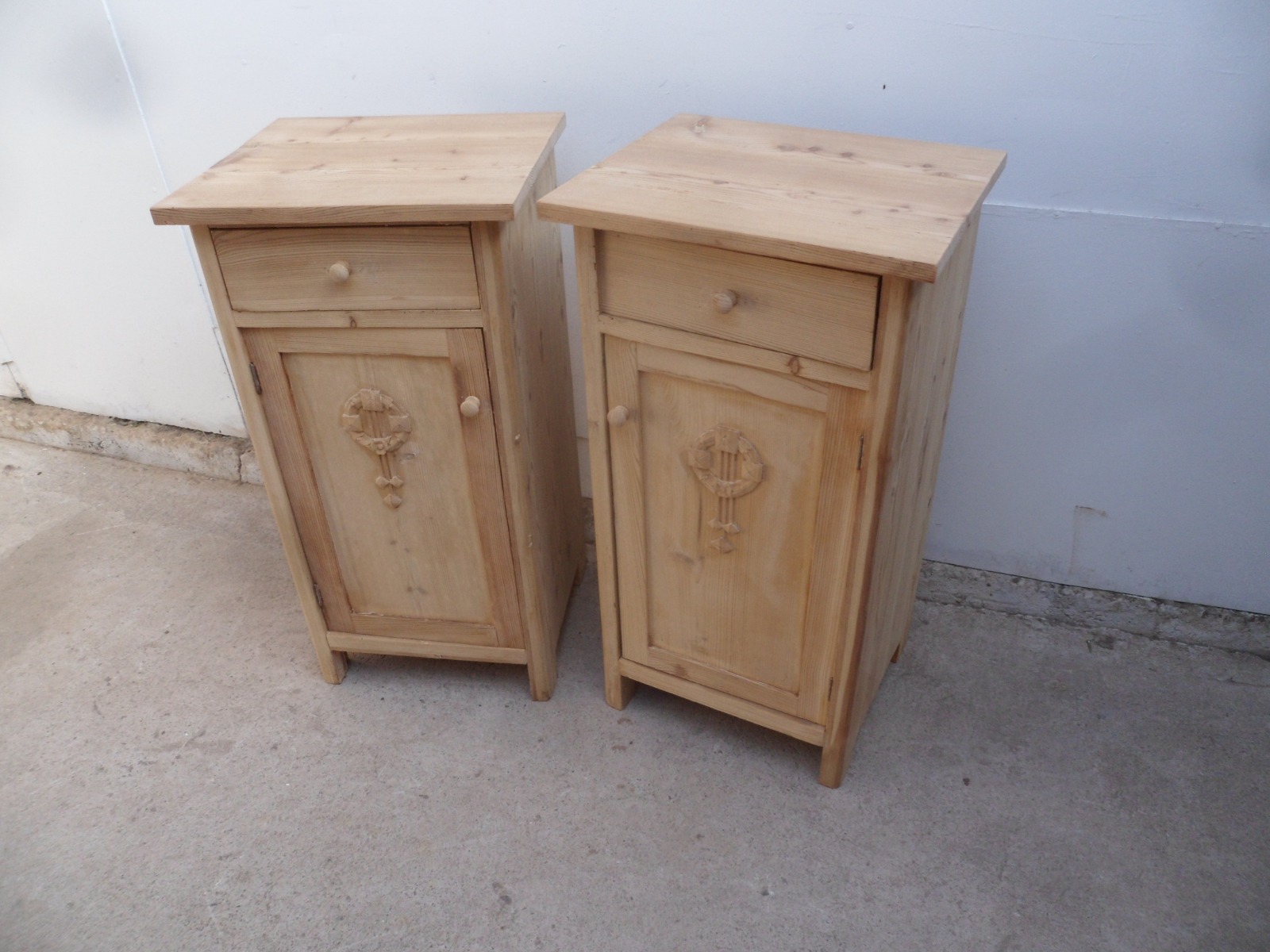 Superb Pair of Antique Pine Art Nouveau Carved Bedside Cabinets to wax / paint