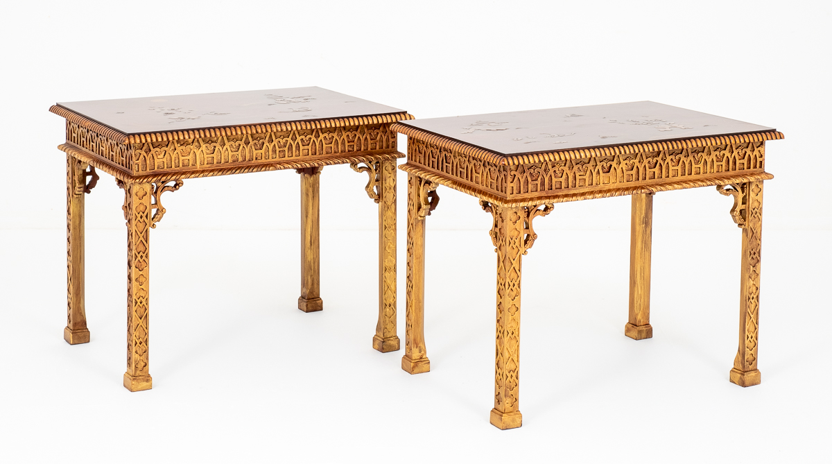 Superb Pair of Chippendale Style Chinoiserie Side Tables c.1920