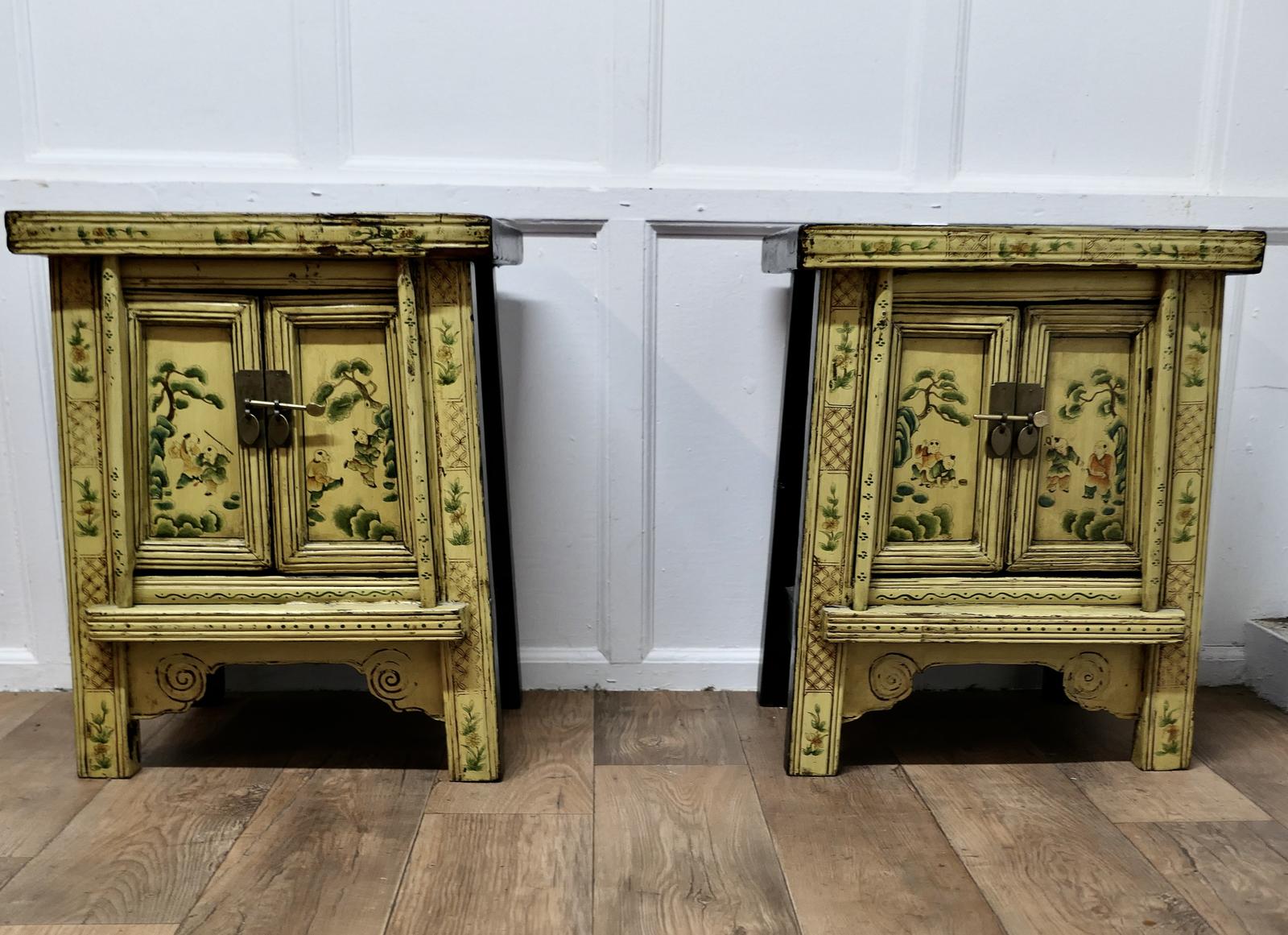 Superb Pair of Cream Lacquered Chinoiserie Cabinets