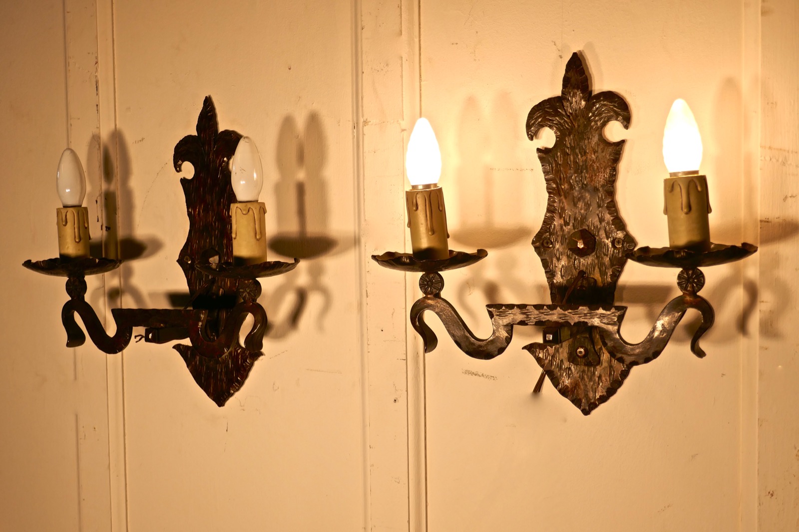 Superb Pair of French Arts & Crafts Gothic Iron Wall Lights