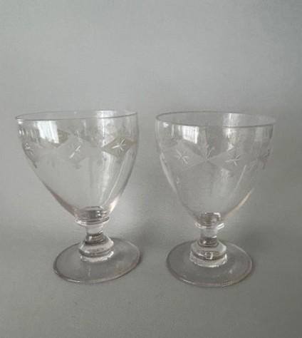 A superb pair of etched glass rummers. These fine examples date from the start of Georgian Regency period and have large goblet shaped bowls, with etched diamond and star pattern. The squat baluster stems have large supporting knops and round feet, with broken pontil marks. These are a great gift idea with capacity suitable for wine, beer or spirits.