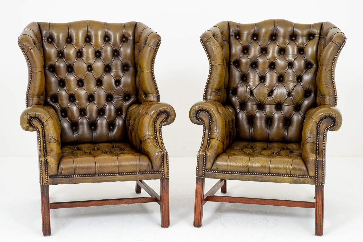 Superb Pair of Georgian Style Deep Buttoned Wing Chairs c.1920