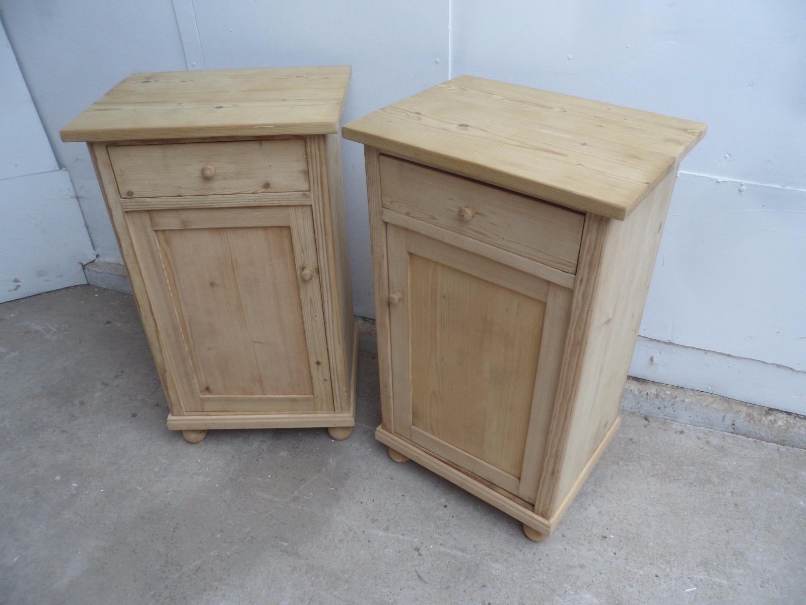Superb Pair of Large Antique Pine Wide Bedside Cabinets to Wax / Paint