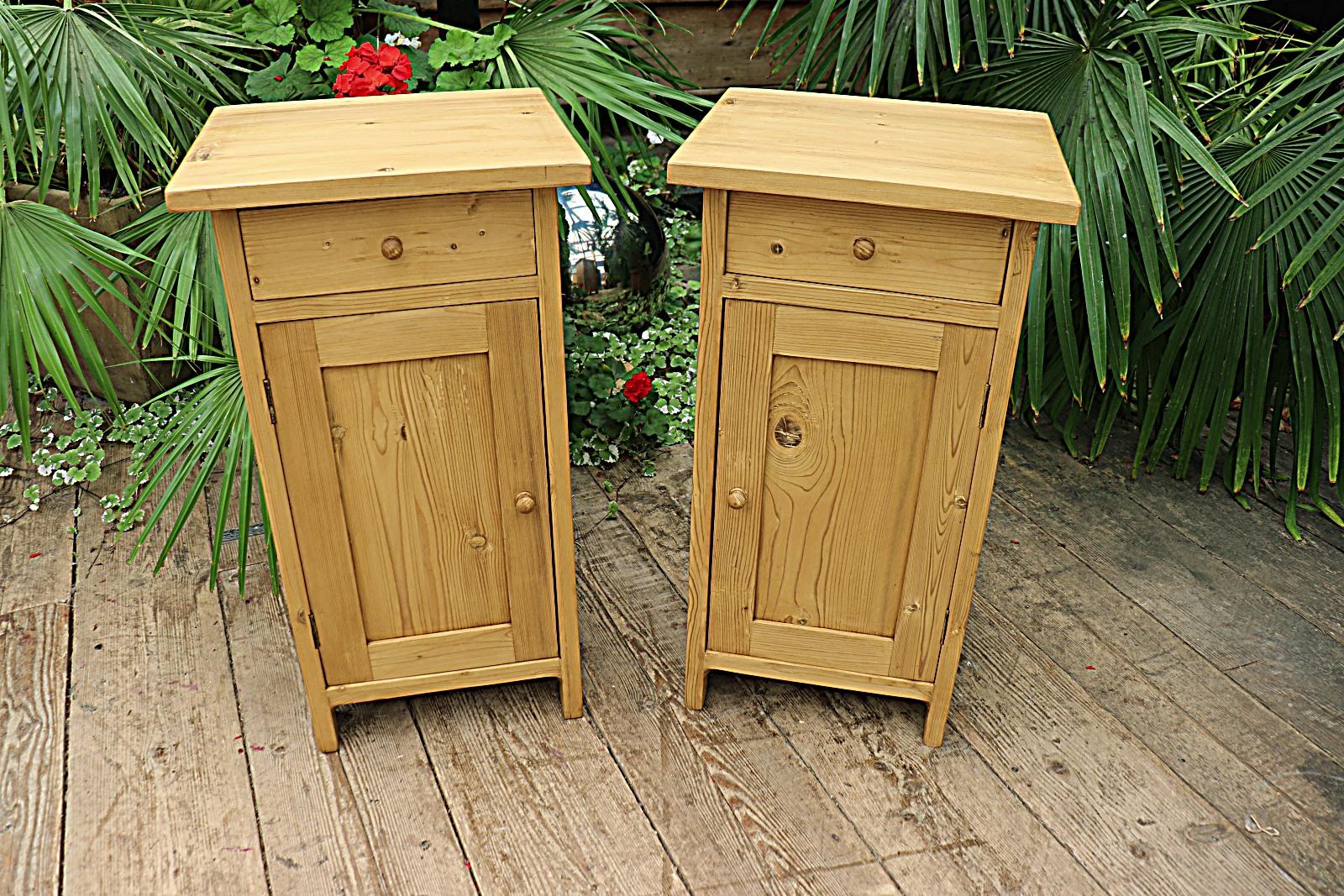Superb Pair of Old Mid Century Pine Bedside Cabinets / Cupboards / Lamp Tables