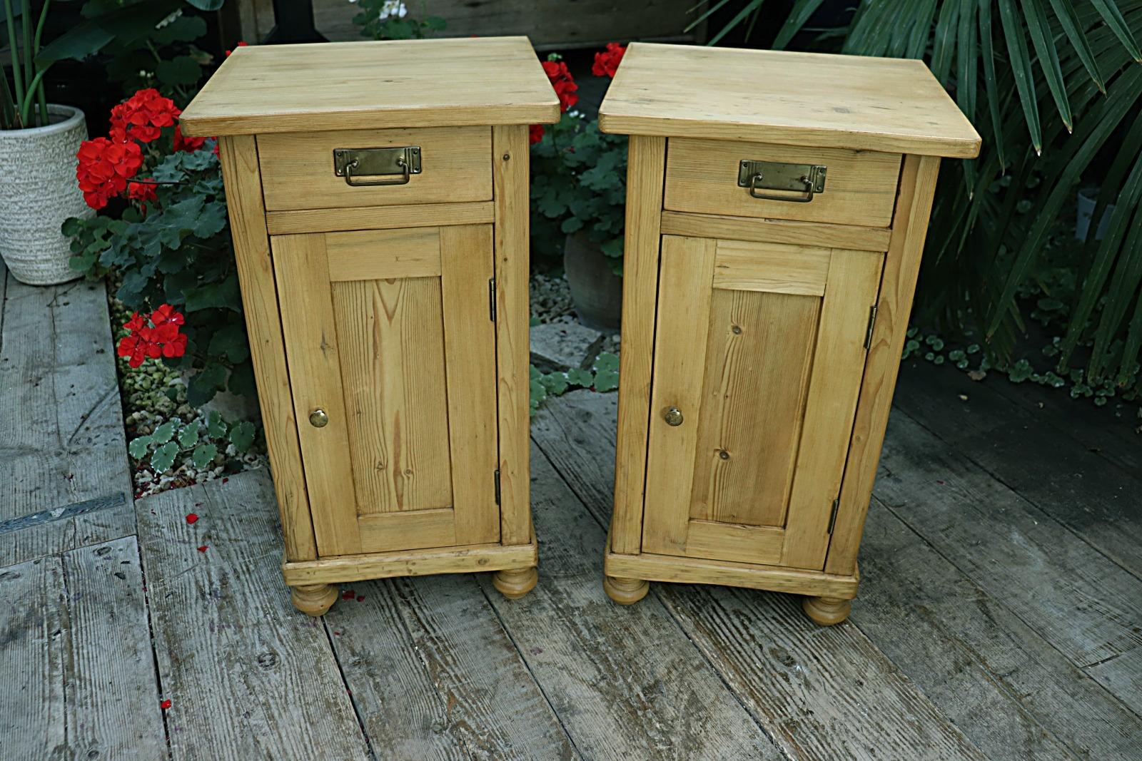 Superb Pair Of Old Pine Bedside Cabinets