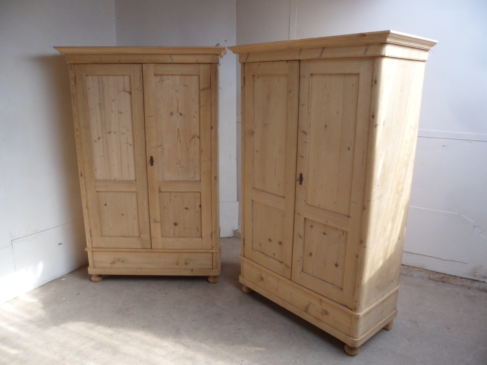Superb Pair of Pine Rounded Edge Knockdown Wardrobes to wax / paint c.1920
