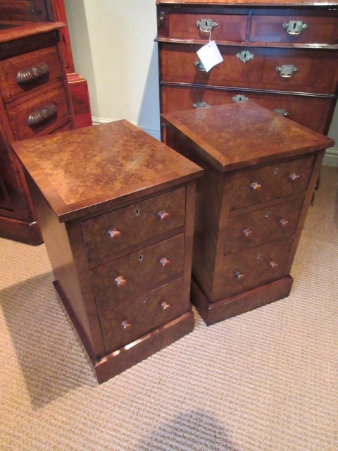 Superb Pair of Victorian Burr Walnut Bedside Cabinets