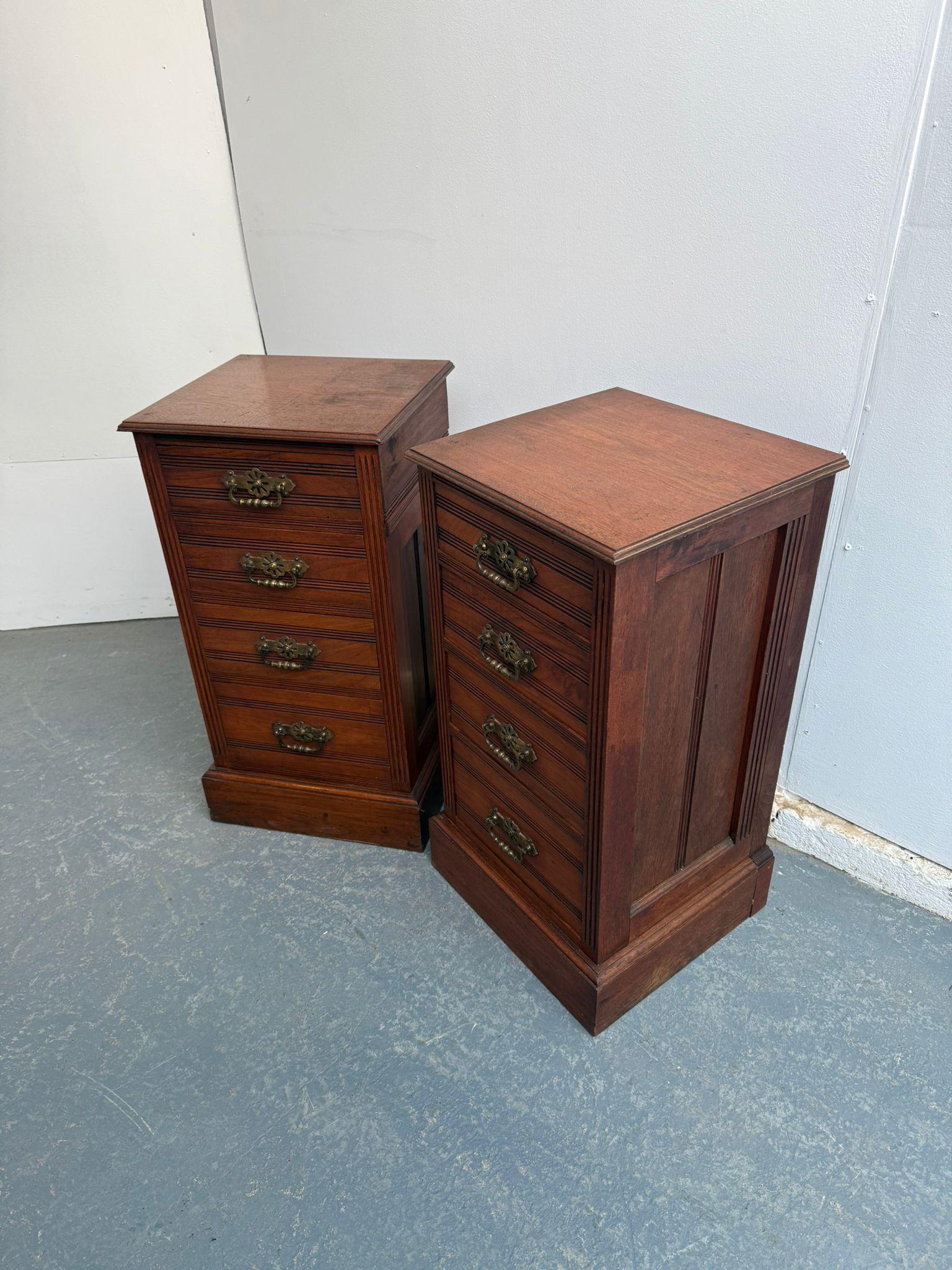 Superb Pair of Waxed Edwardian Mahogany 4 Drawer Bedside Cabinets