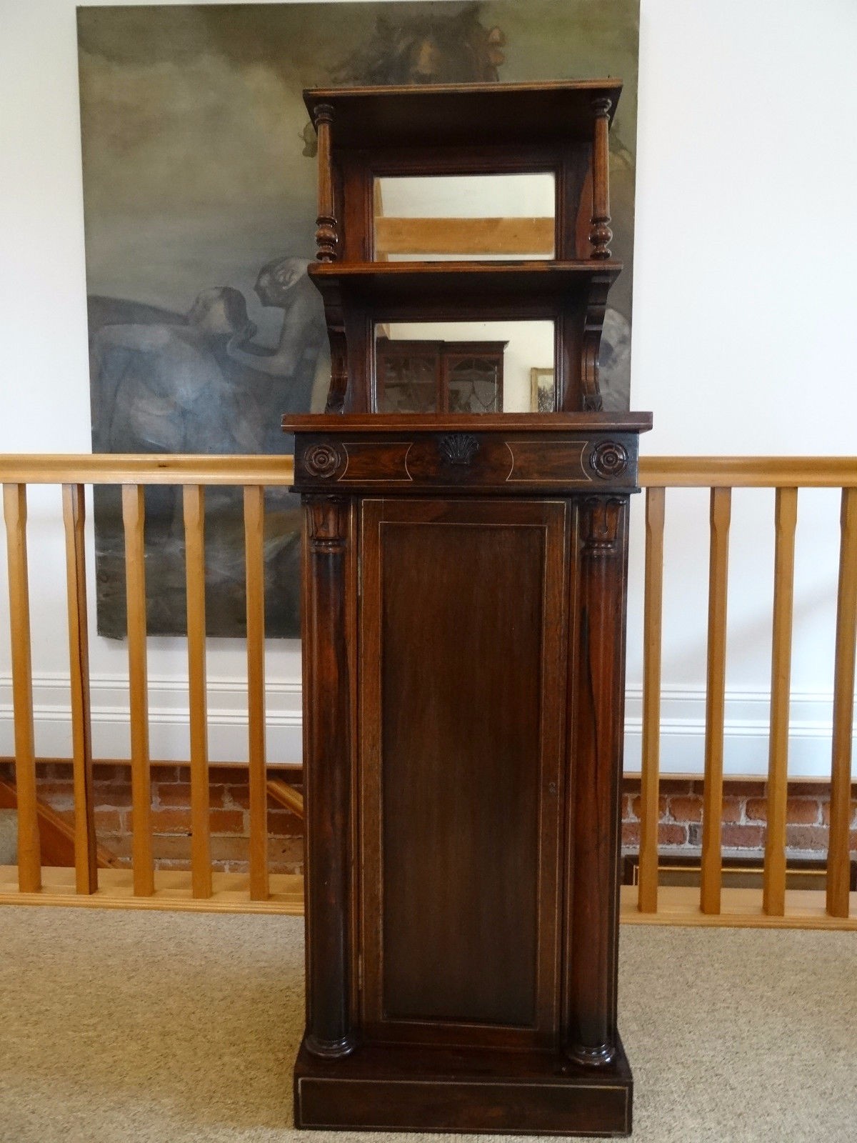Superb Period 19th Century Regency Rosewood Brass Inlaid Pedestal Desk / Pier Display Cabinet