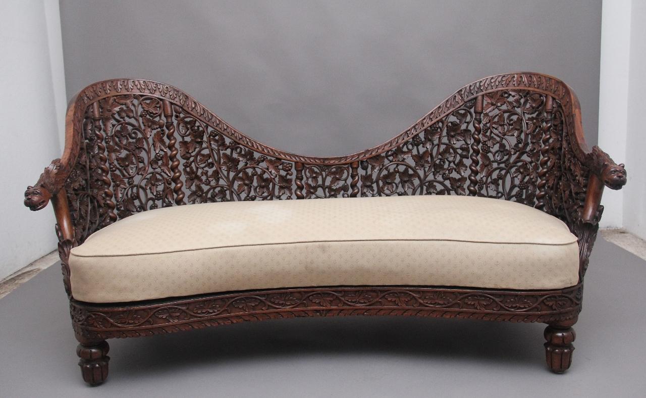 Superb Quality 19th Century Anglo Indian Carved Sofa