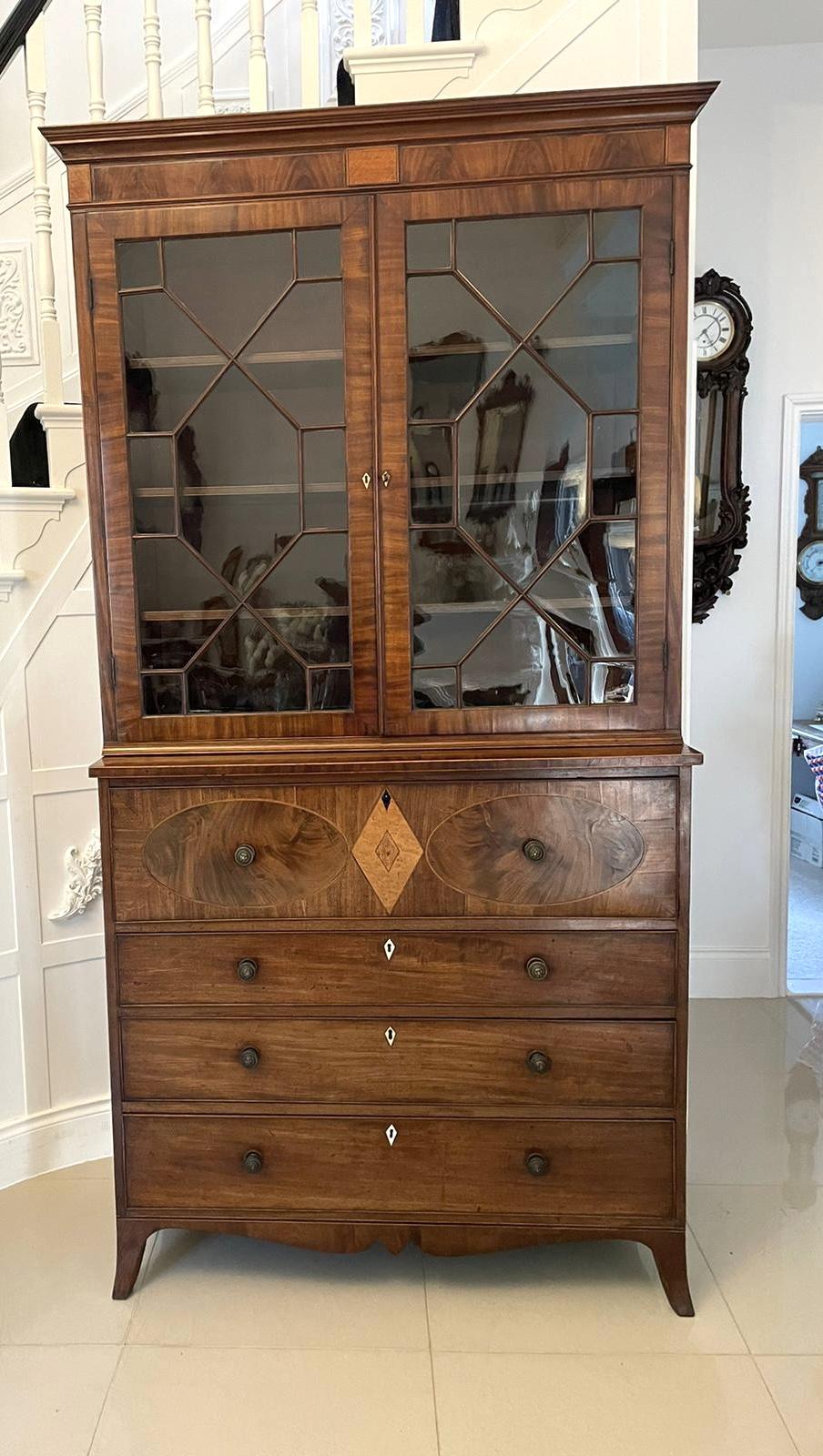 Superb Quality Antique 18th Century George III Mahogany Inlaid Secretaire Glazed Bookcase (1 of 17)