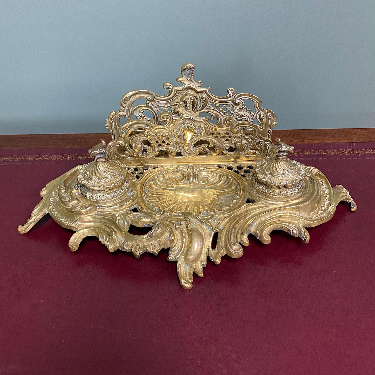 Superb Quality Antique Brass Inkwell Letter Holder Desk Set
