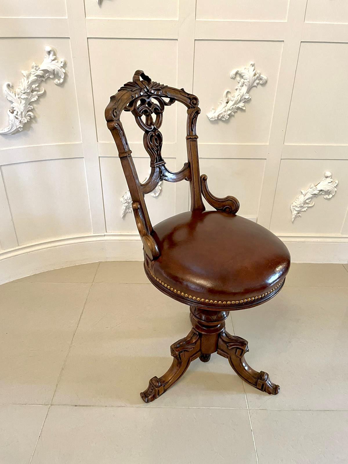 Superb Quality Antique Victorian Carved Walnut Revolving Music Chair