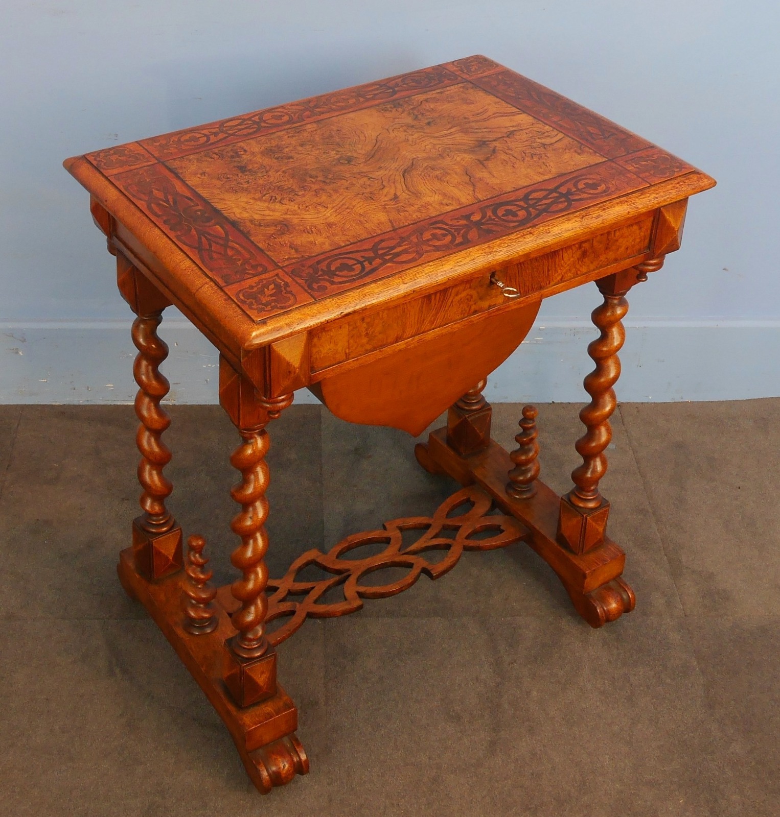 Superb Quality Inlaid Golden Oak Victorian Sewing Side Table