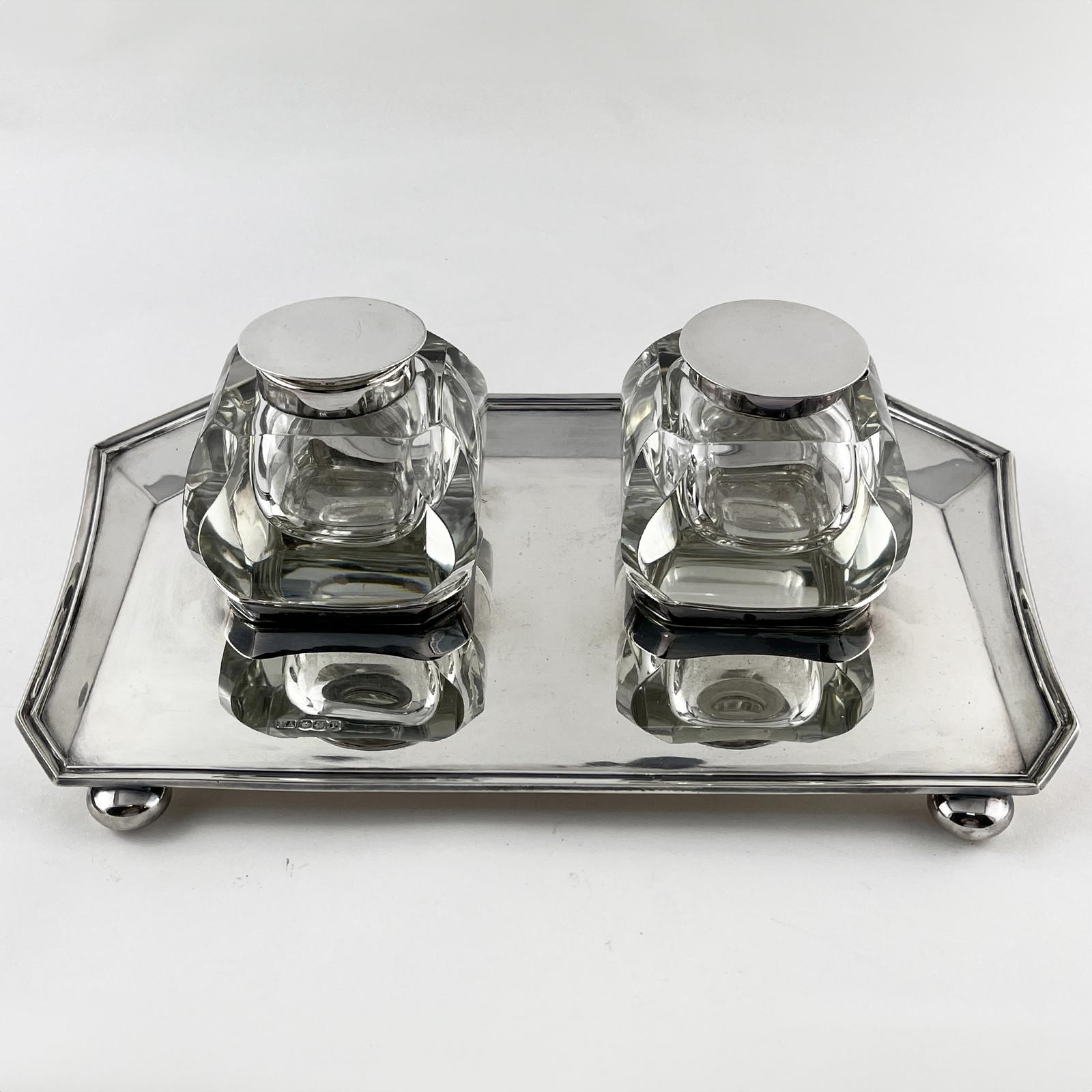 Superb Quality Stylish Sterling Silver Desk Two Bottle Inkstand (1 of 8)