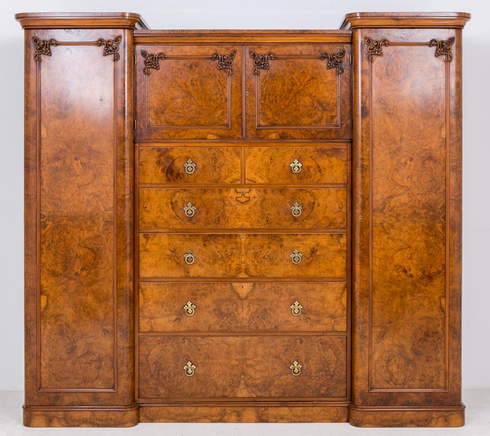 Superb Quality Victorian Burr Walnut Combination Wardrobe (1 of 1)