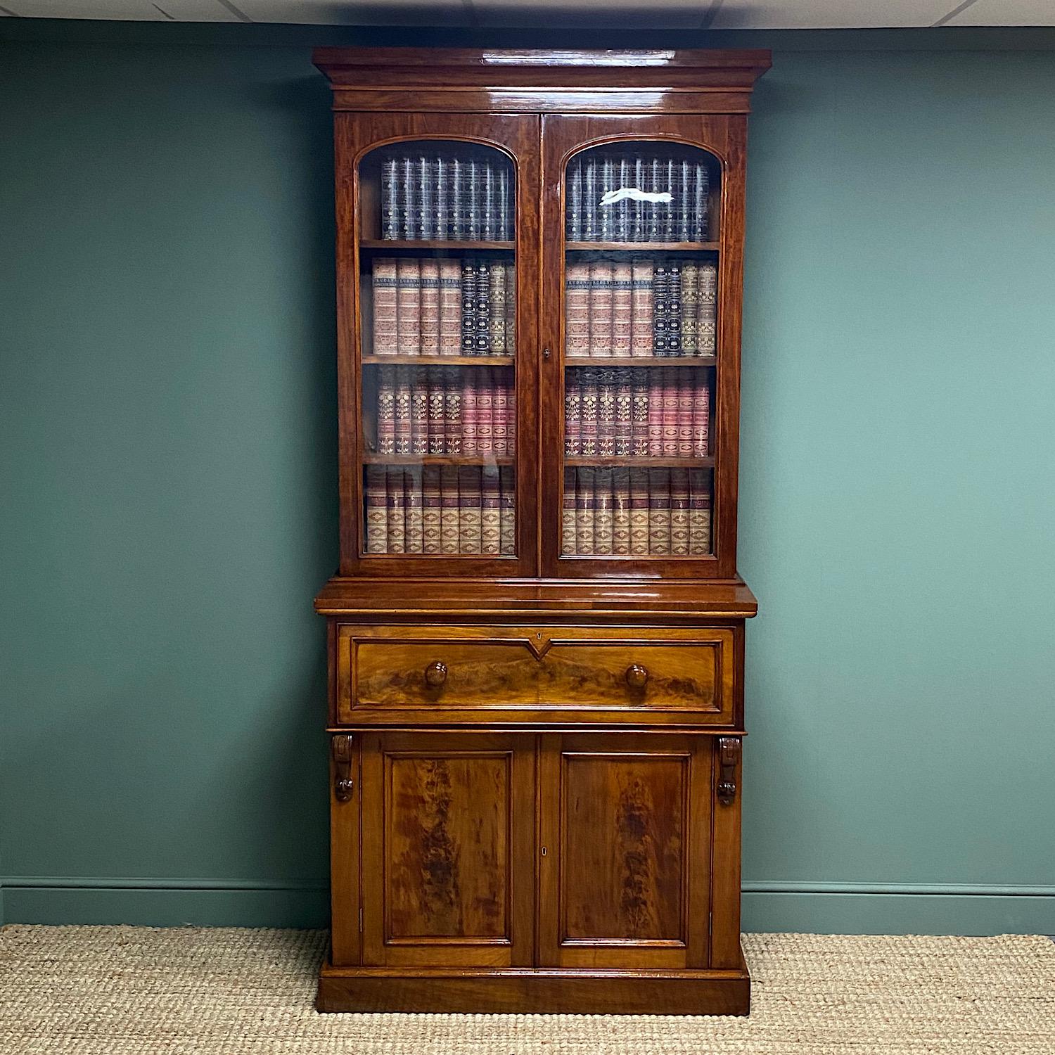 Superb Quality Victorian Mahogany Antique Glazed Secretaire Bookcase On Cupboard