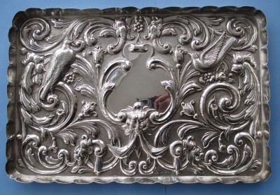 Superb Quality Victorian Pictorial Solid Silver Card Tray Hallmarked London 1900