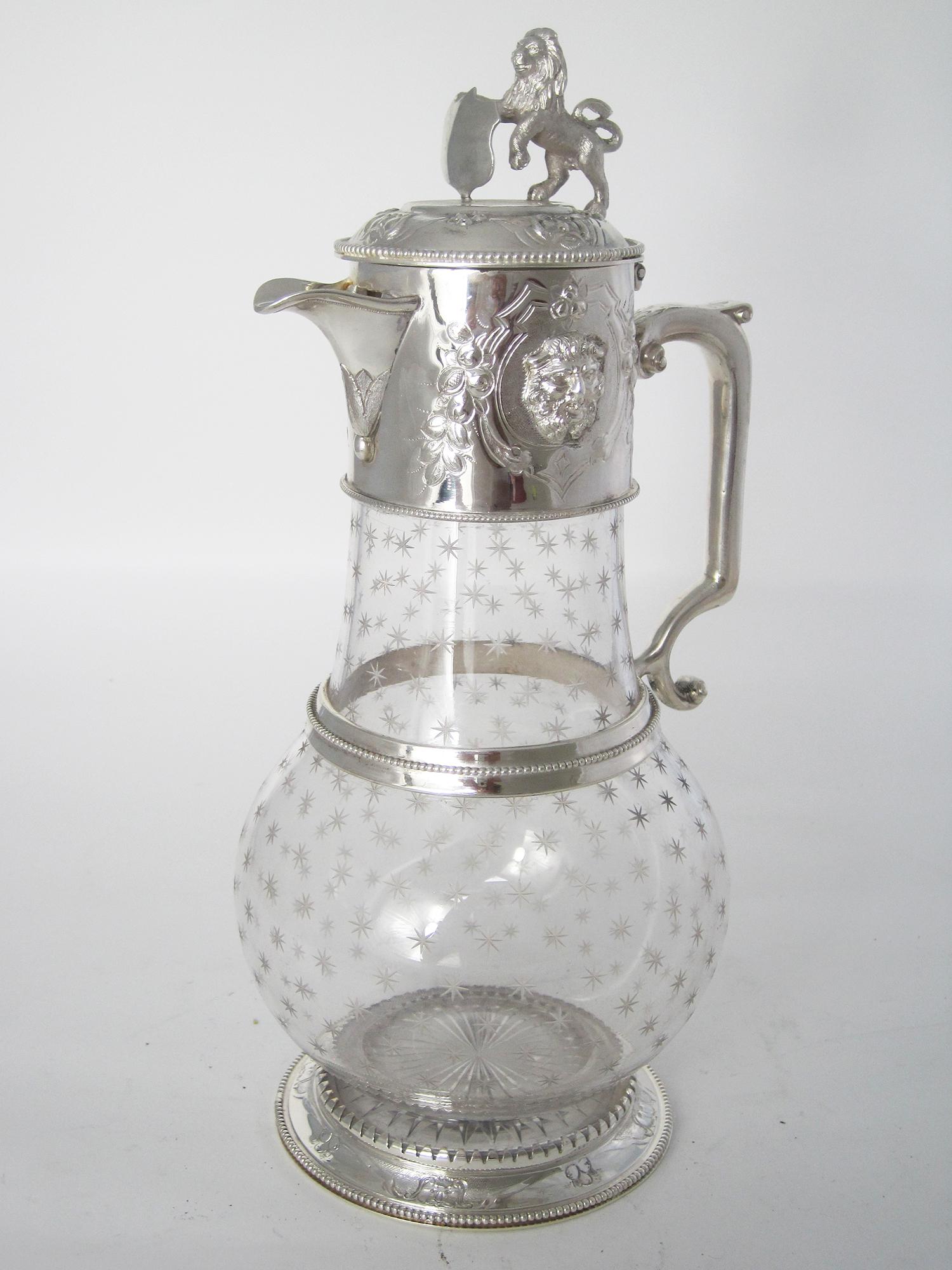 Superb Quality Victorian Silver Plated Claret Jug with Lion & Shield Finial