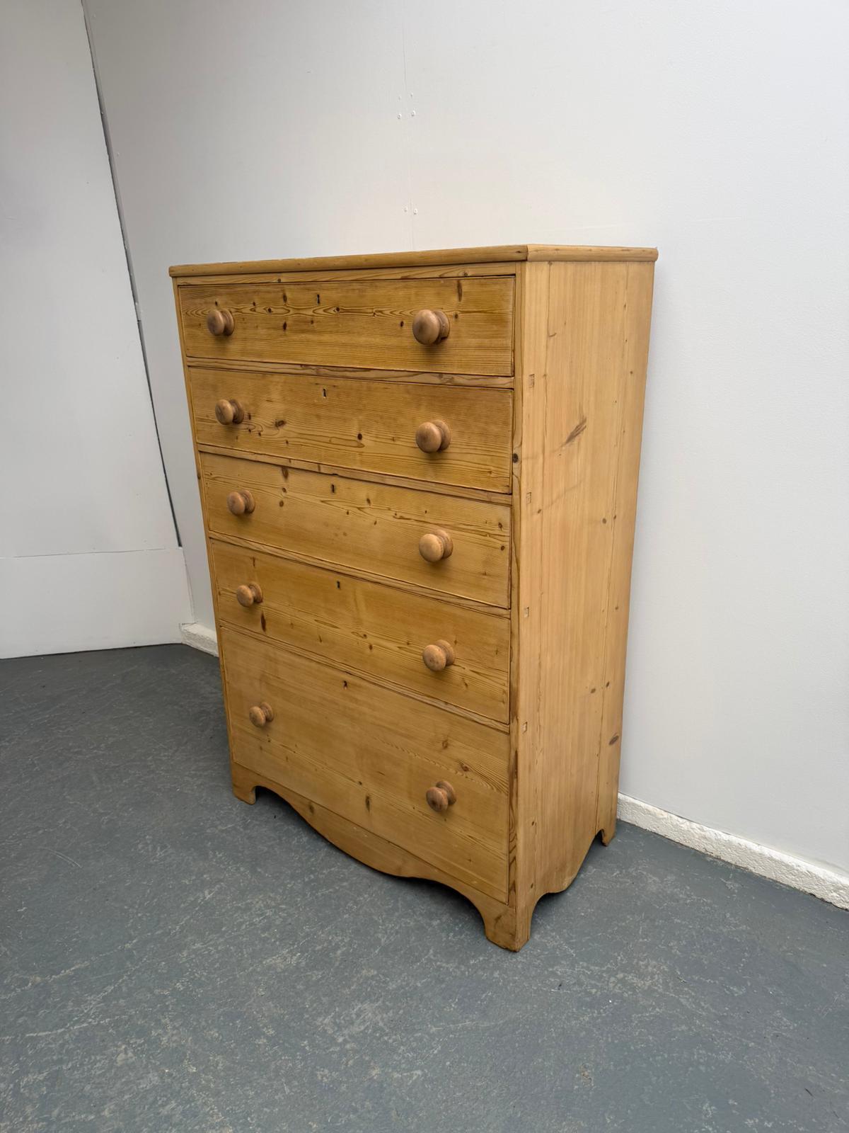 Rare Pair of Antique Pine Victorian 5 Drawer Chest of Drawers to wax / paint