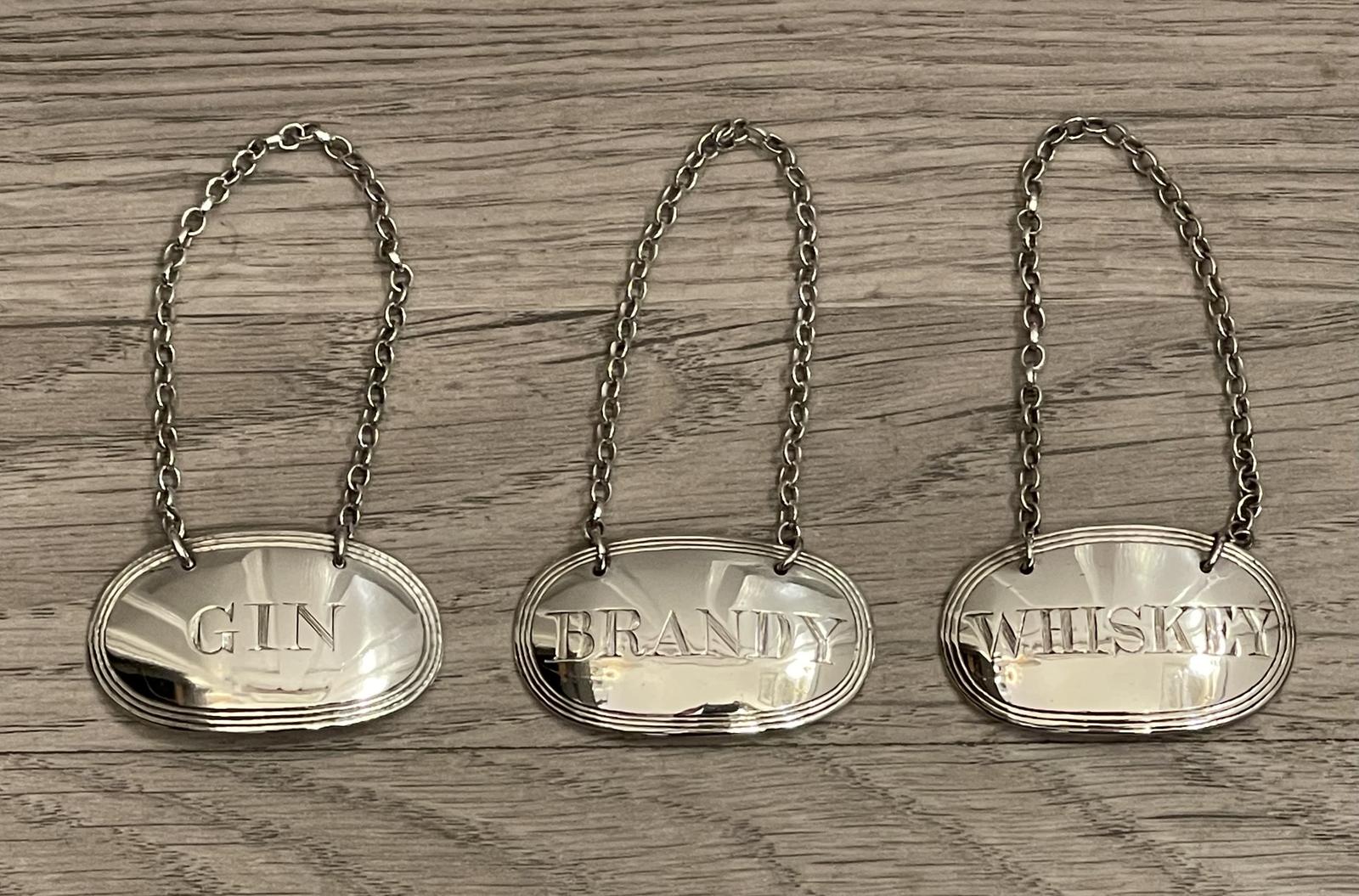 Superb Set of Heavy Silver Decanter Labels, Chester 1902