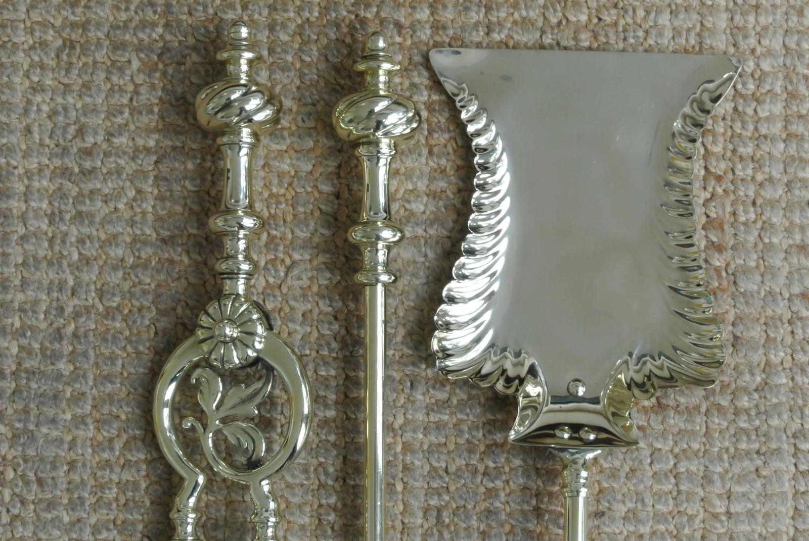 Superb Set Victorian Brass Fire Irons Larger Than Average Companion c.1890