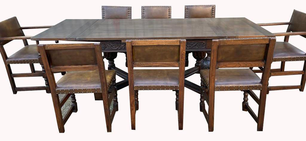 Superb Solid Carved Oak Extending Dining Table & Chairs