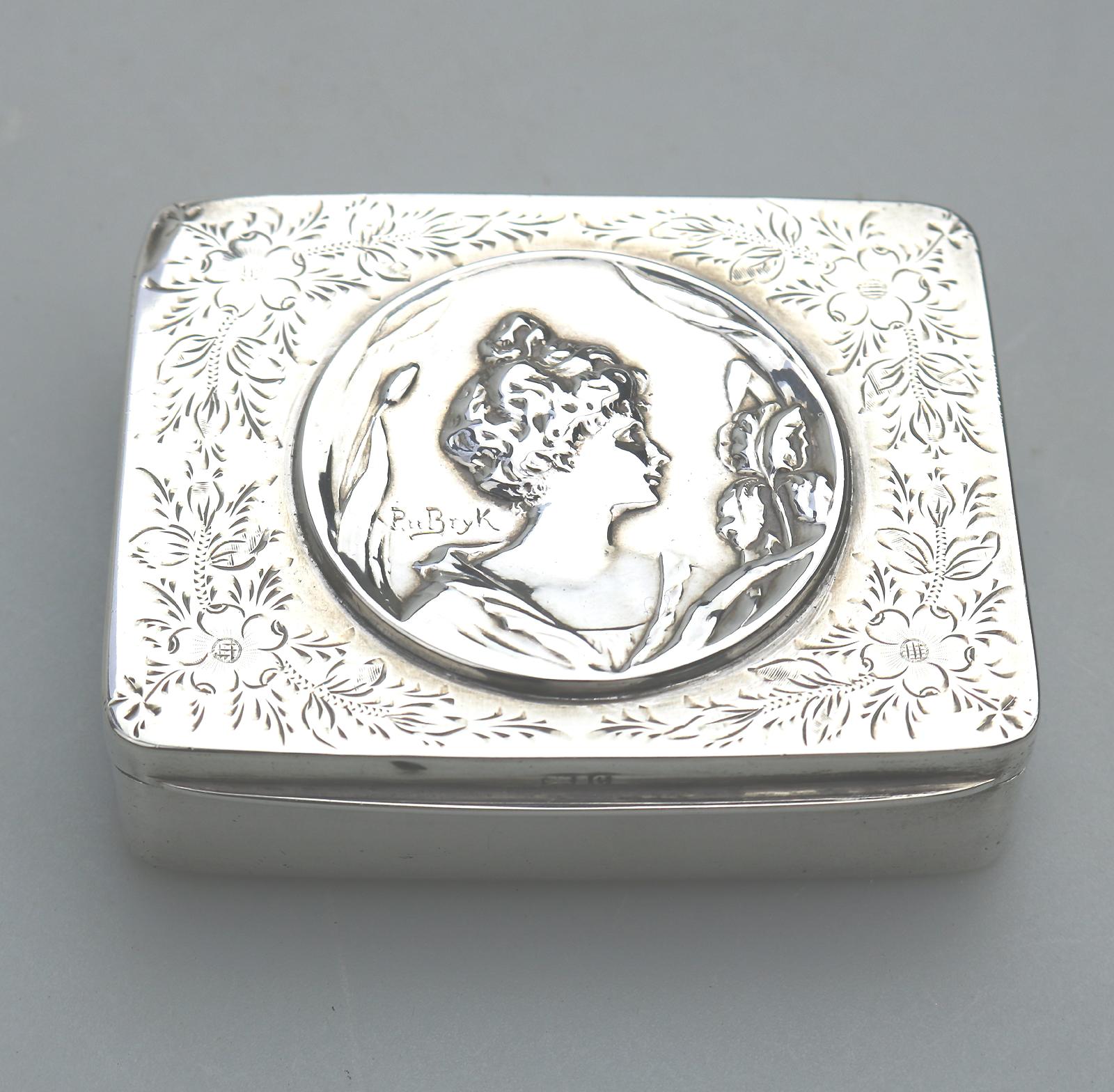 Superb Solid Silver Art Nouveau Maiden Table Snuff Box P Bryk c.1902