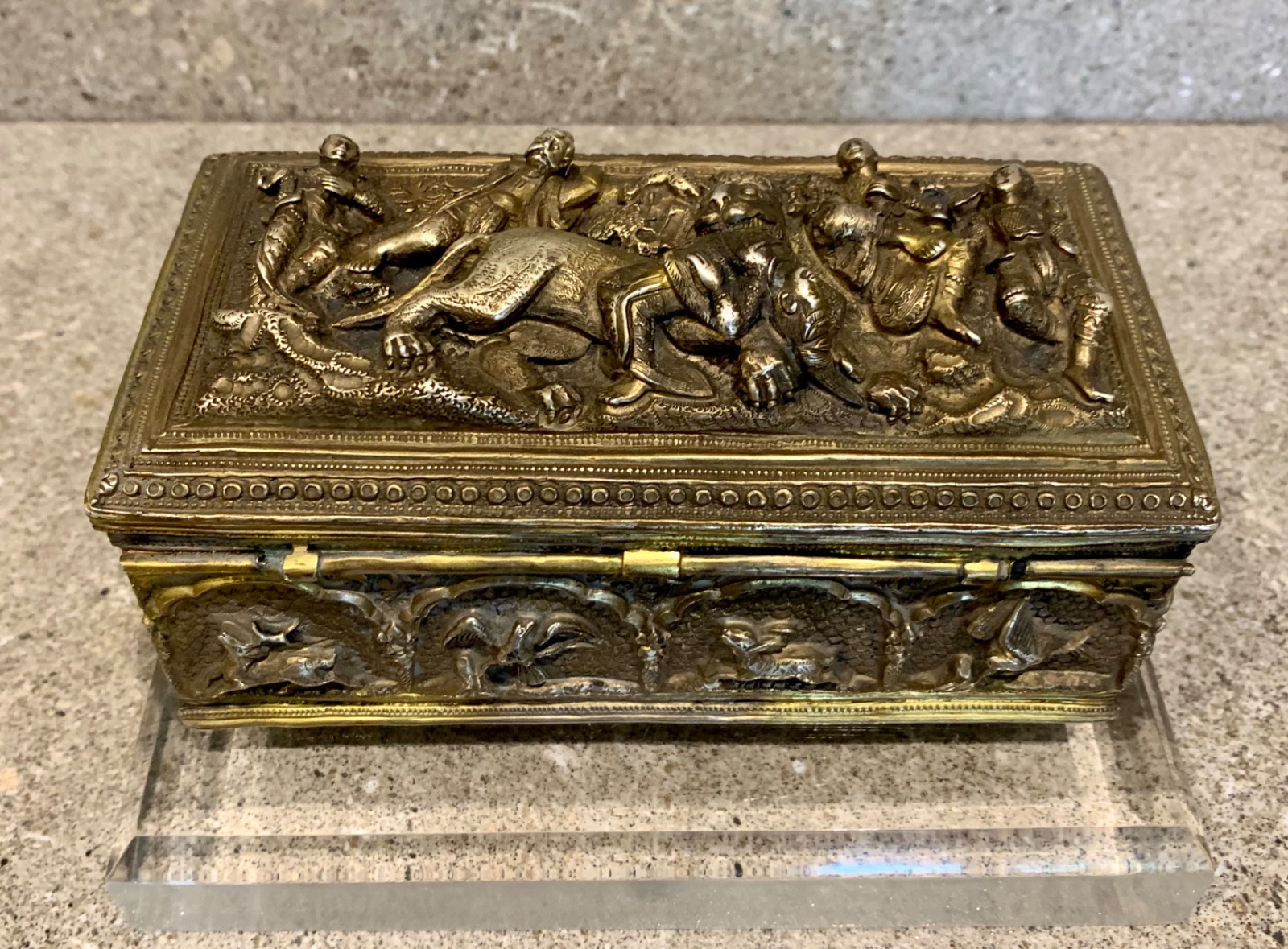 Superb Solid Silver Gilt Burmese High Relief Ceremonial Box C.1870