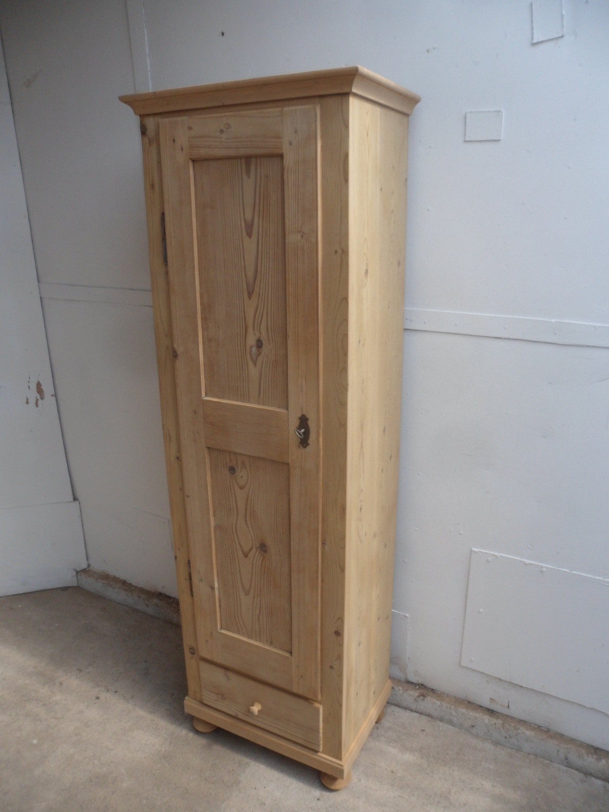 Superb Tall Thin Old Pine 1 Door Pin Hinge Cupboard to wax / paint