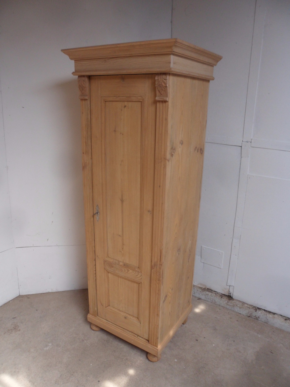 Superb Tall Thin Old Pine 1 Door Shoe Cupboard to Wax / Paint