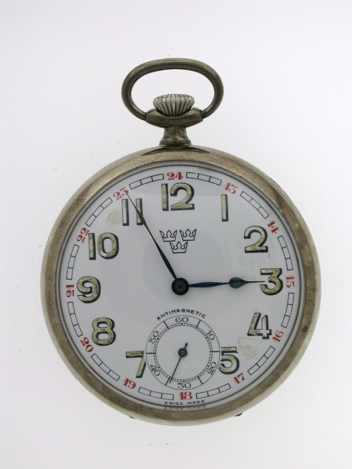 Superb Unique Piece of Swedish Military Steel Royal Pocket Watch 1942