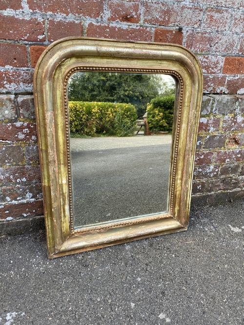 Superb Useful Size Antique French 19th Century Carved Wood & Gesso Arched Top Original Silver / Gilt Distressed Mirror