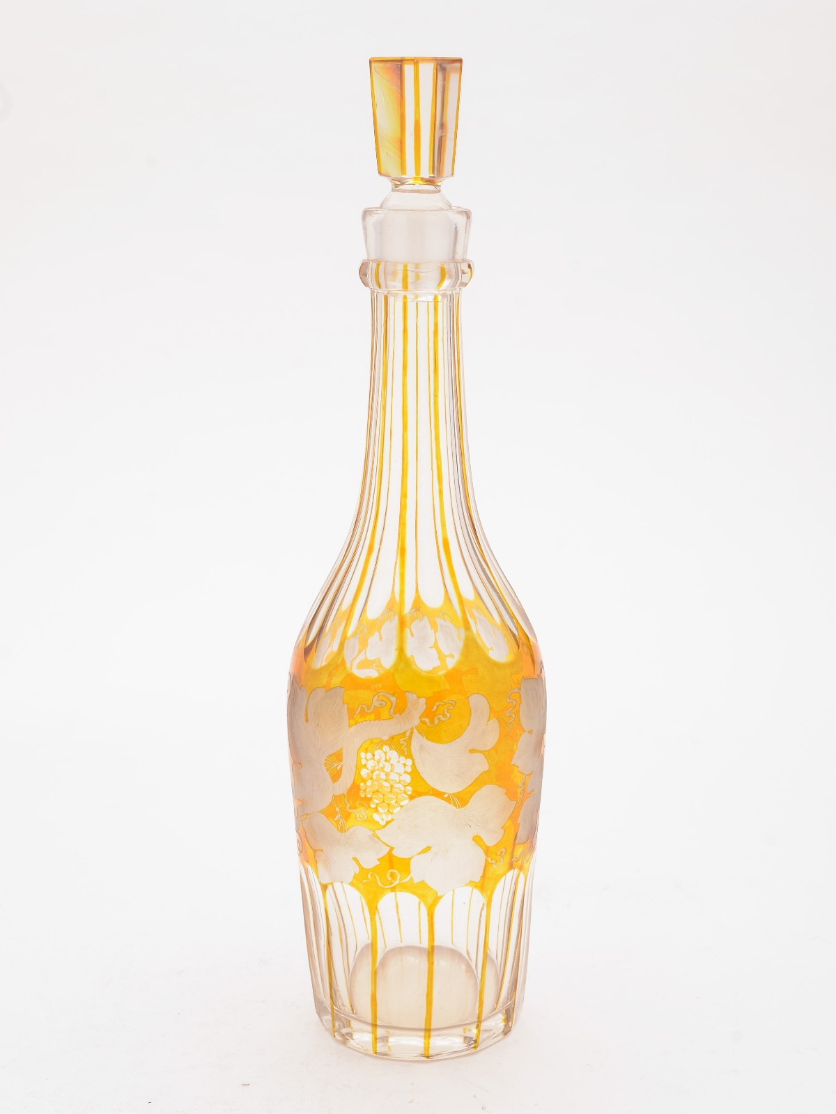Superb Victorian Amber Overlay Cut Glass Decanter