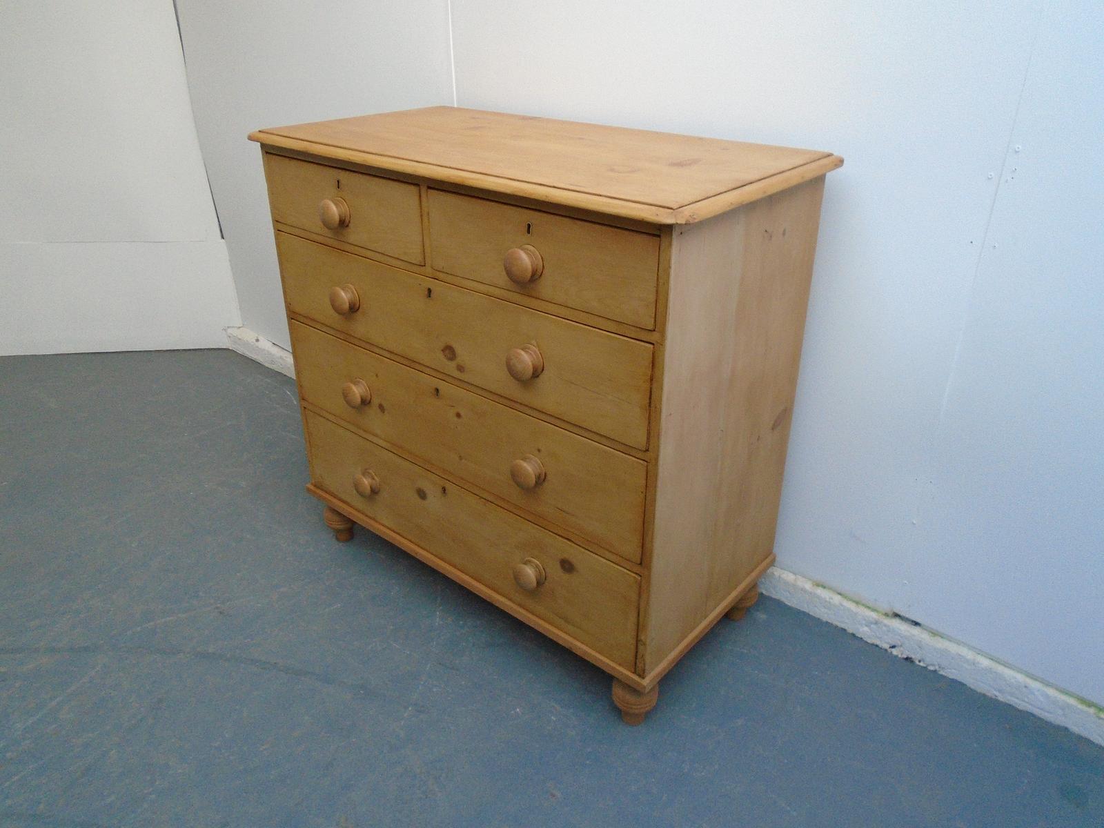Superb Victorian Antique Pine Waxed 5 Drawer Chest of Drawers