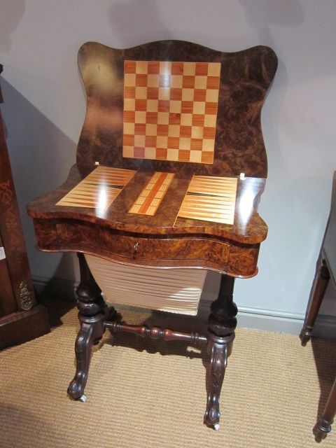 Superb Victorian Burr Walnut Games Table / Sewing Table