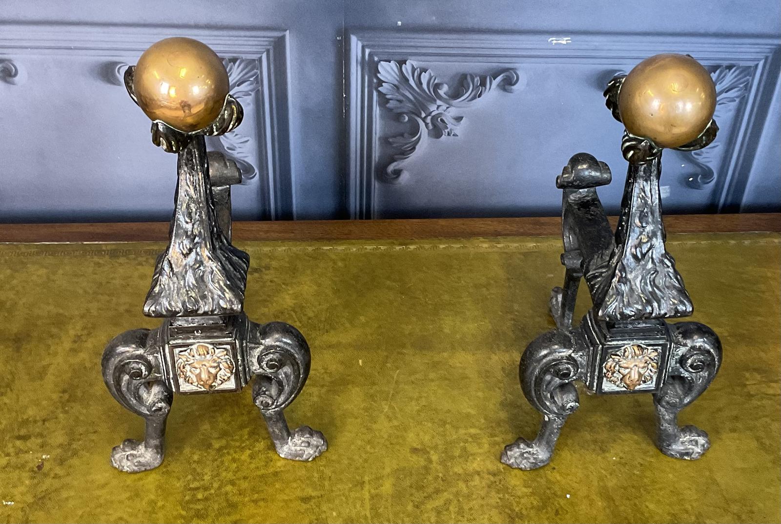 Superb Victorian Cast Iron & Gun Metal Andirons, Fire Dogs