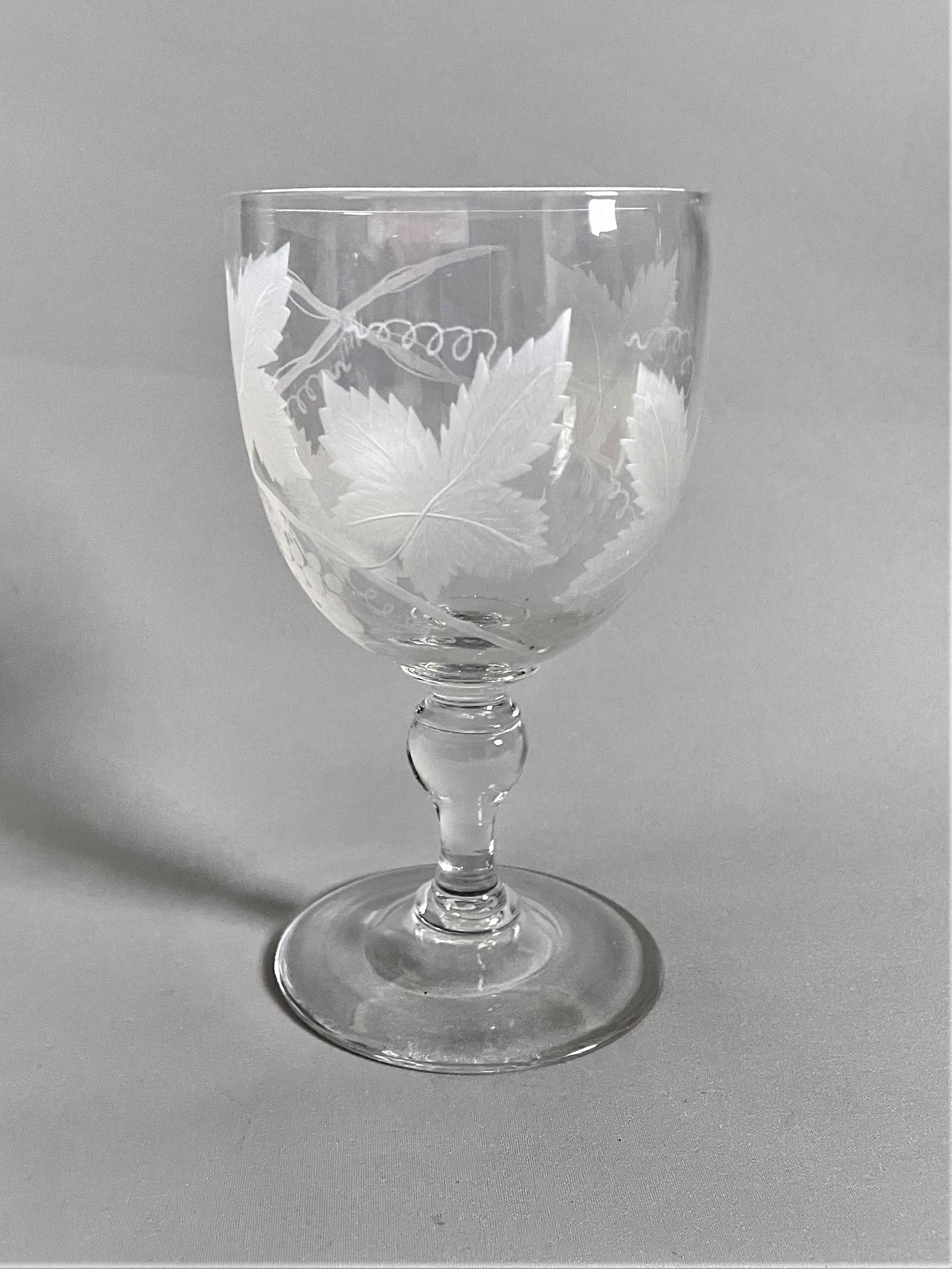 Superb Victorian Fruiting Vine Etched Wine Goblet (1 of 4)