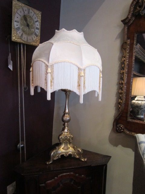 Superb Victorian Gilded Table Lamp & Shade c.1890