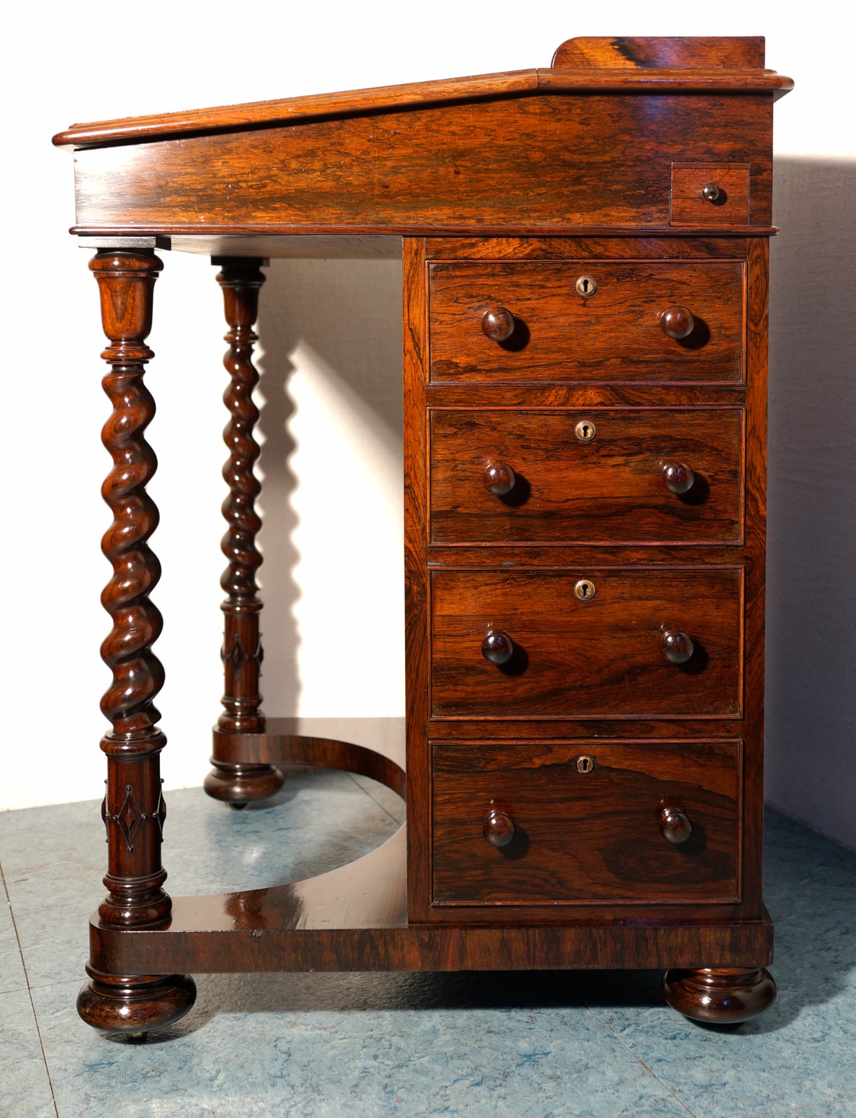 Superb Victorian Quality Rosewood Davenport with Bird's Eye Maple Interior