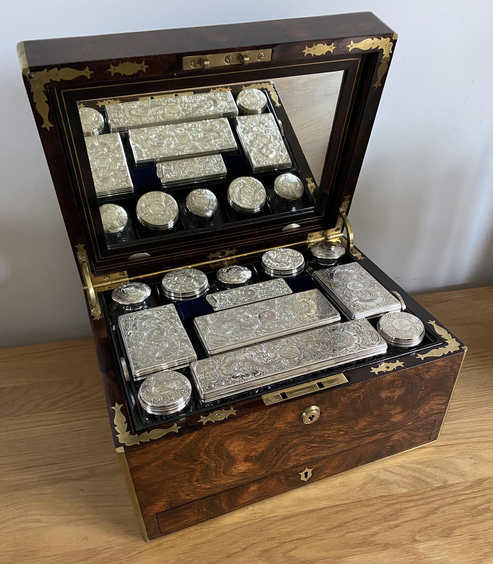 Superb Victorian Rosewood Dressing Case Silver 1847