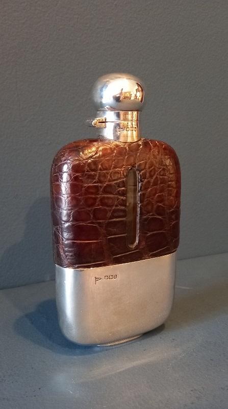 Superb Victorian Silver & Crocodile Skin Hip Flask