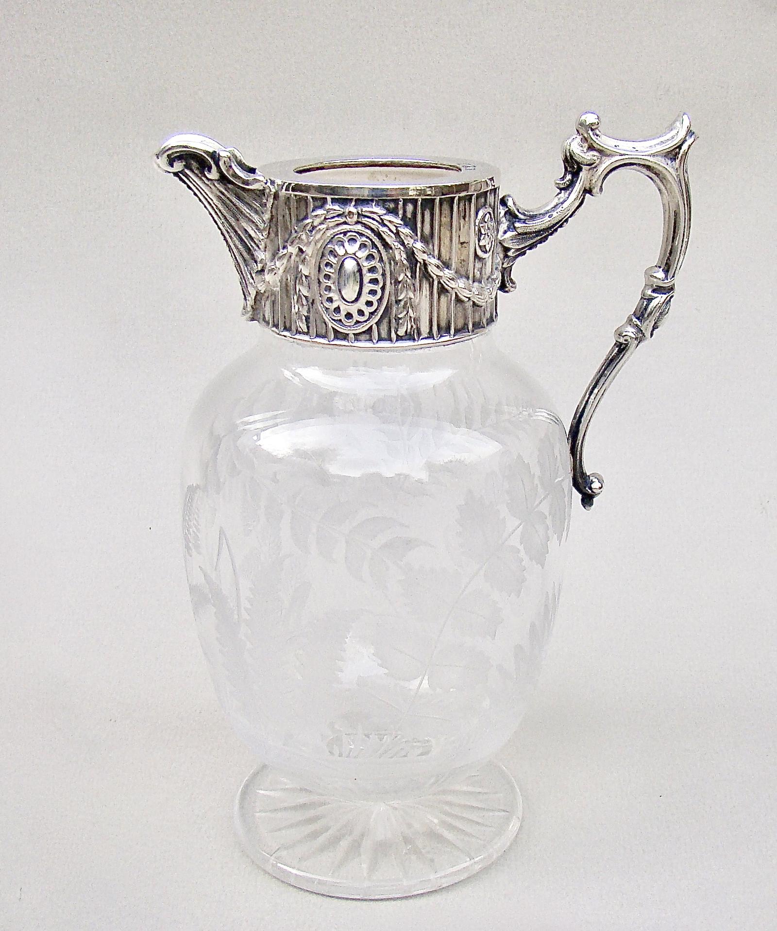 Superb Victorian Silver Plated & Etched Glass Small Water Jug by Elkington & Co, Sheffield 1861