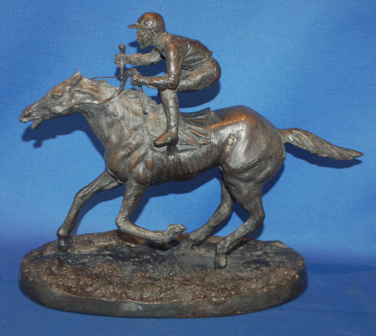 Superbly Detailed Bronze Figure of a Racehorse & Jockey, Bearing Mene Signature