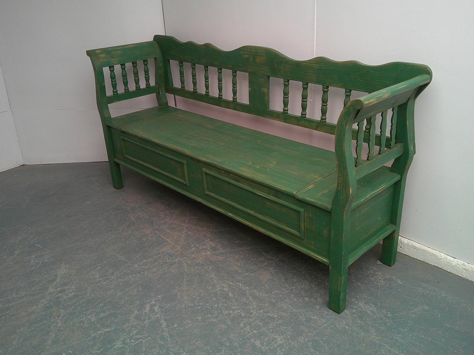 Superbly Painted Antique Pine Green 3 Seater Box Settle / Bench