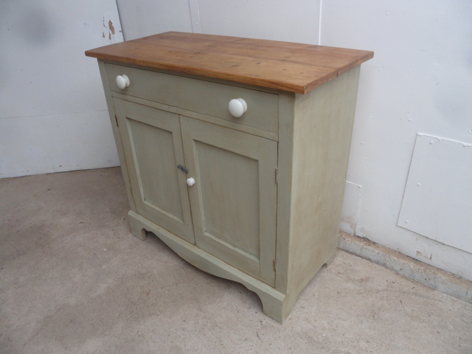 Superbly Painted Reclaimed Pine Light Green 2 Door 1 Drawer Dresser Base
