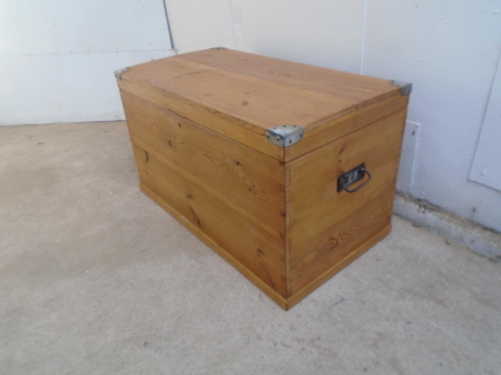 Superbly Waxed Antique Pine Metal Bound Victorian Blanket Box / TV Stand