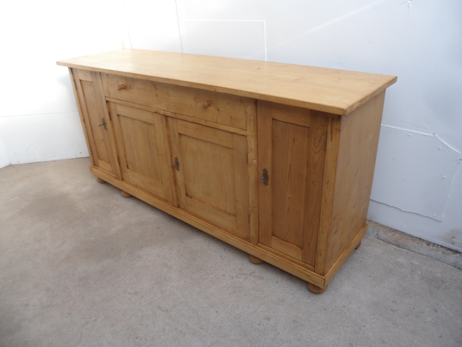 Superbly Waxed Large 4 Door Old Pine Kitchen Dresser Base